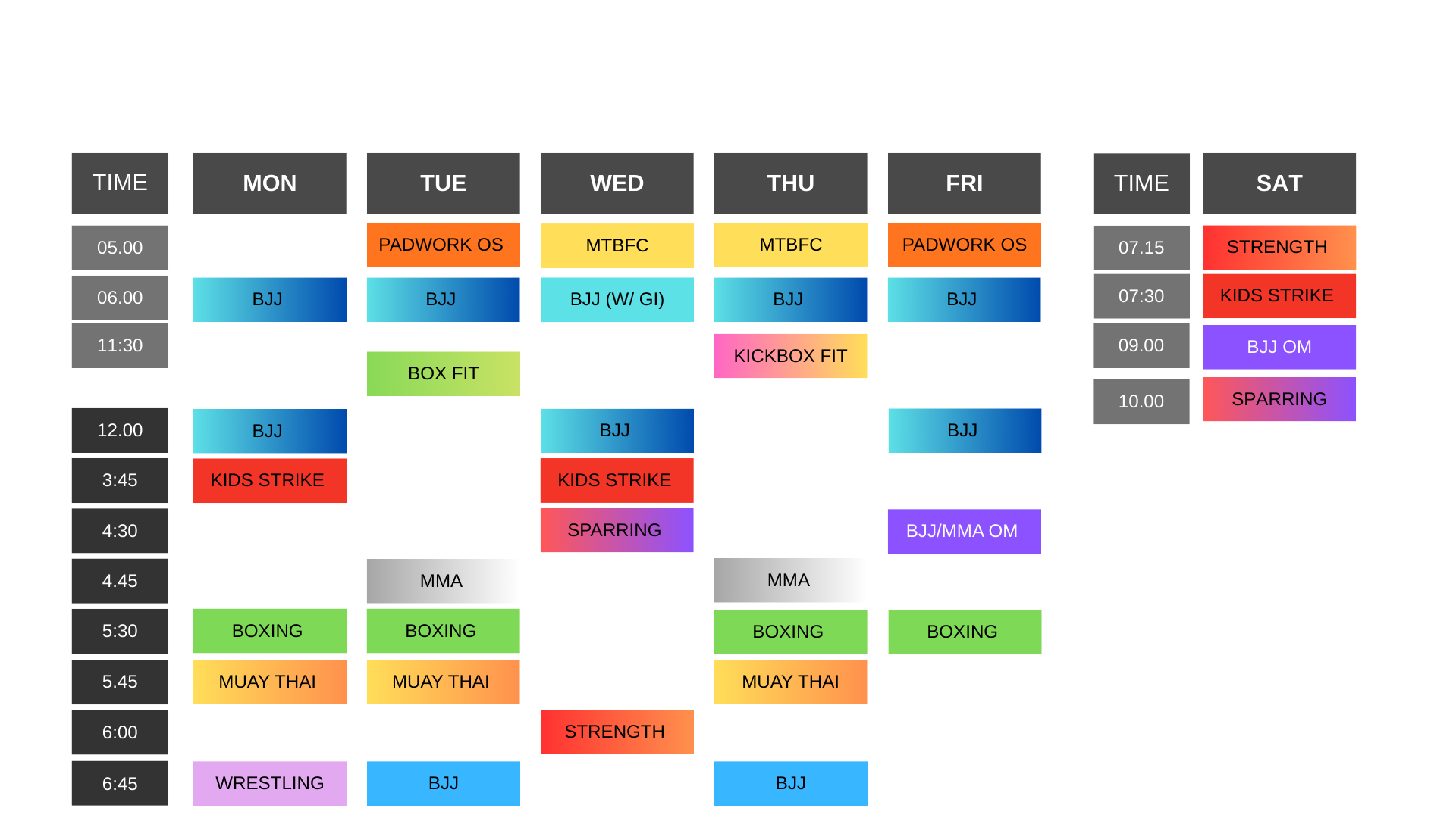 Disclaimer: this is a visual aid only. Times and class type may change due to demand. Ensure that you check within the timetable link on the website or the momence app for all current and live classes and their times – Poundit Team